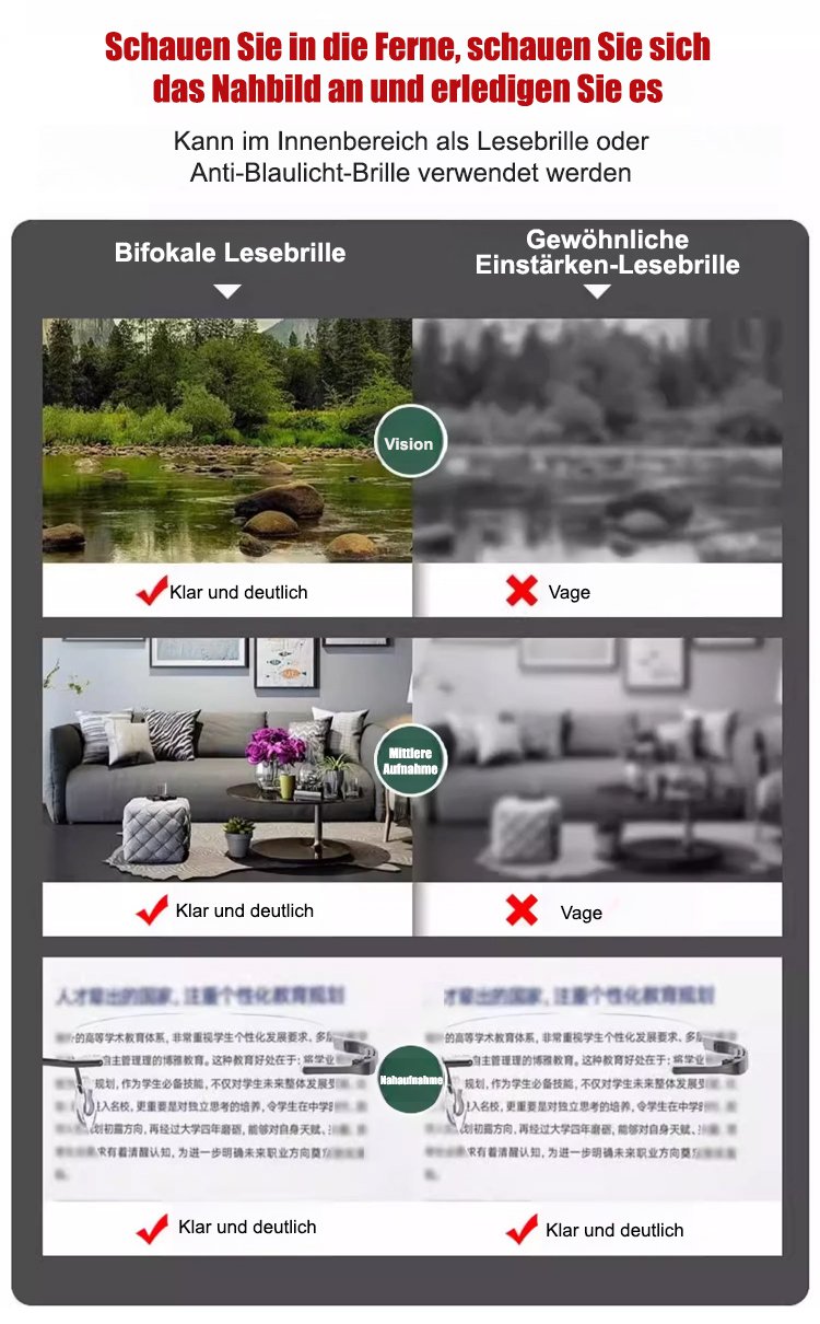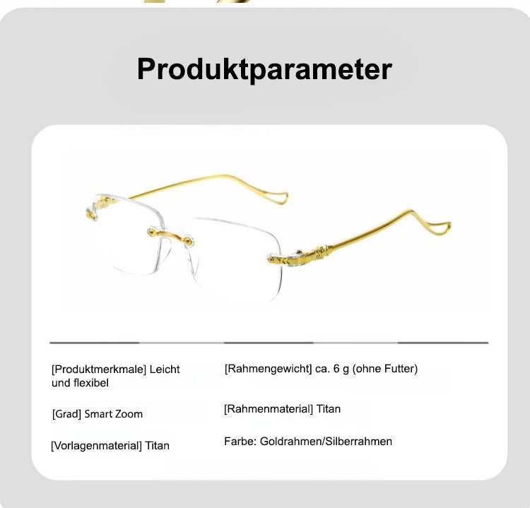 Intelligente, farbwechselnde, ultraklare, randlose Presbyopiebrille mit Zoomfunktion